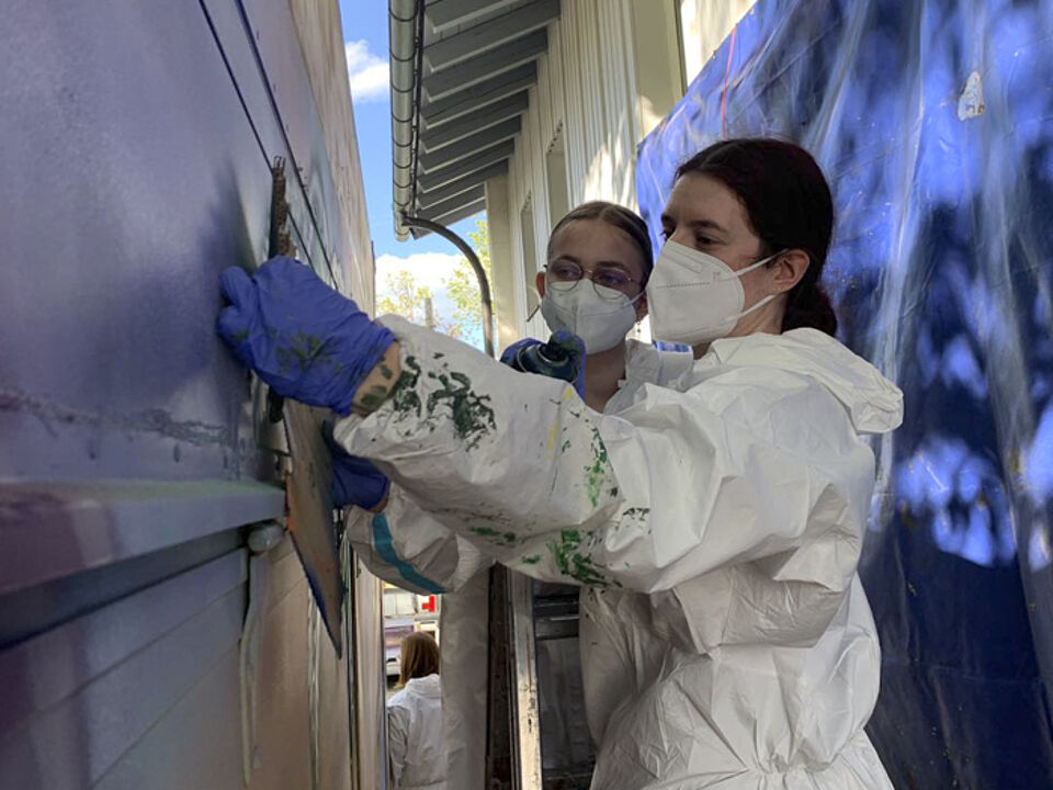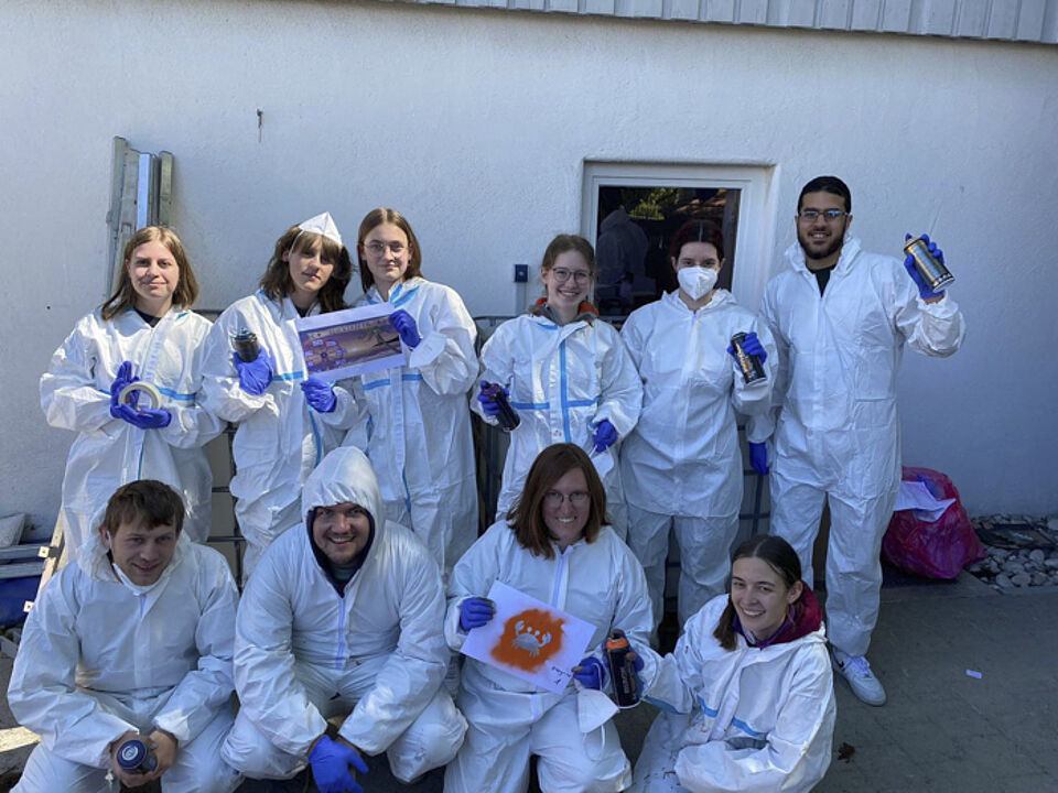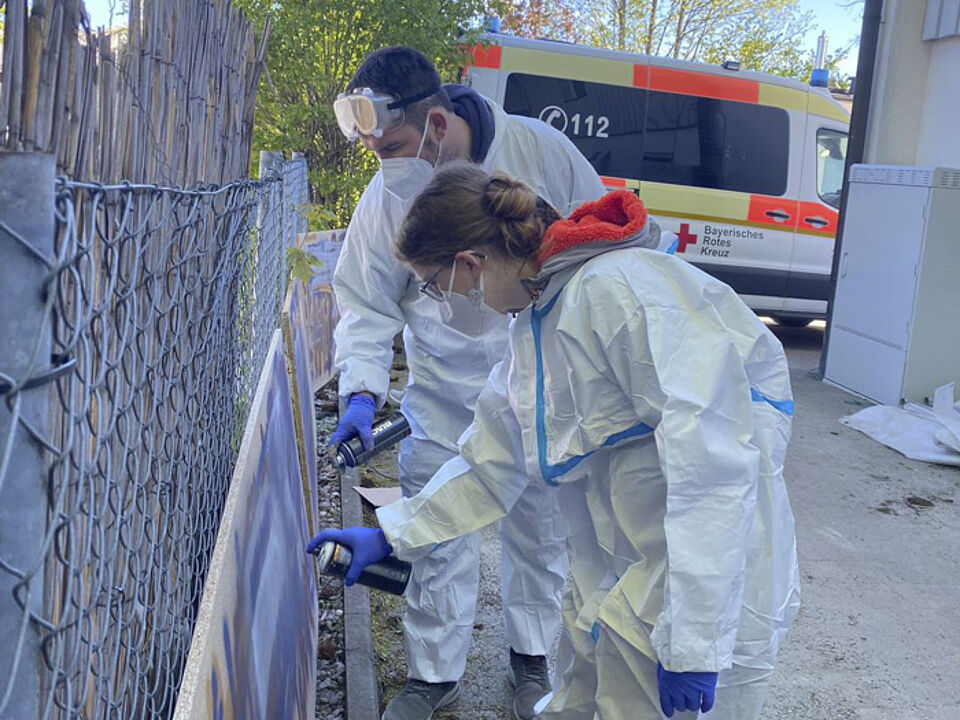 Die Idee für das Design stammt von kreativen Köpfen aus dem JRK Weilheim und Penzberg. Aber bevor die Farbe aufs Metall konnte, mussten erst einmal Schablonen ausgeschnitten werden - echte Millimeterarbeit, die unzählige Stunden in Anspruch genommen hat.