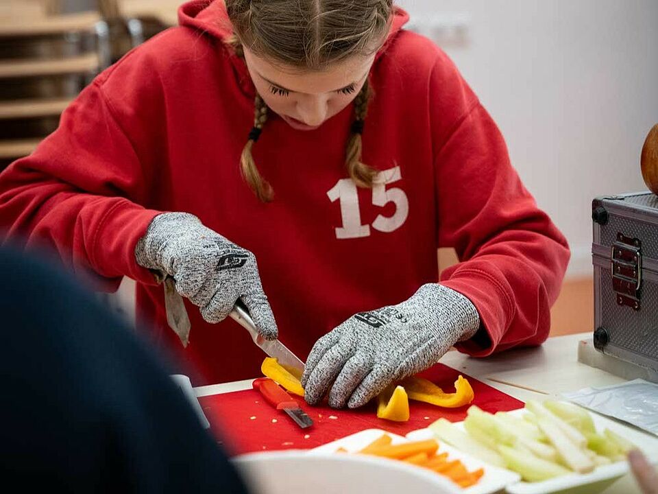 - Richtig gut abschneiden – Kirsten vom Betreuungsdienst zeigte, wie Gemüse nicht nur fachgerecht, sondern auch kreativ geschnitten wird.