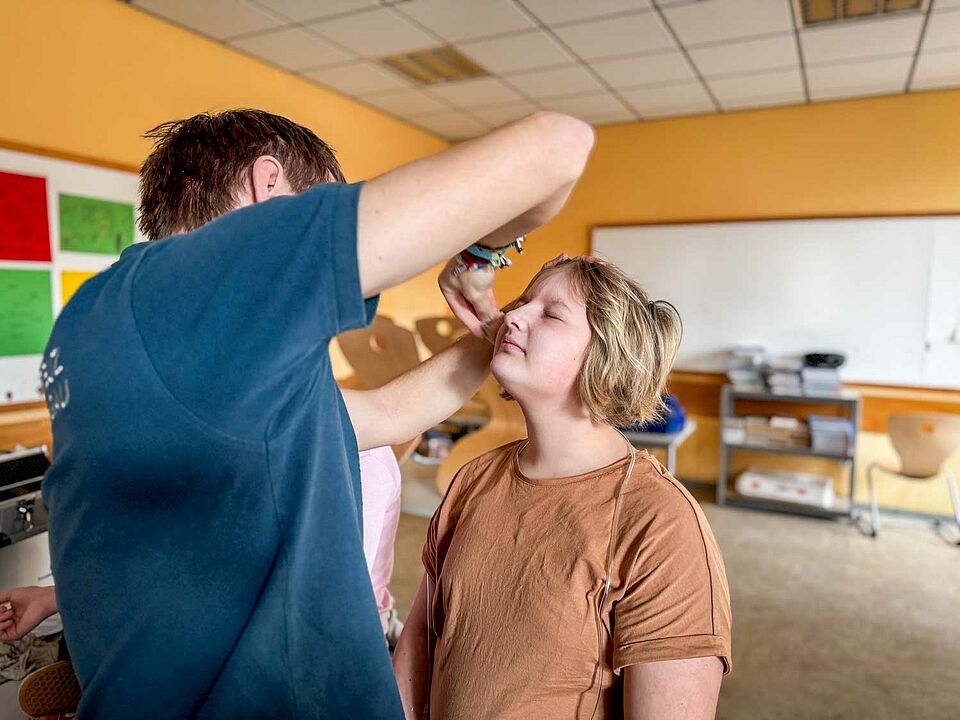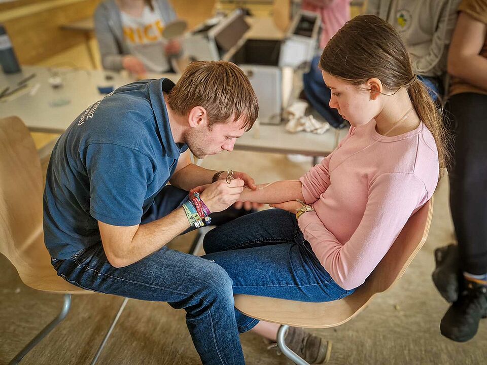 Beim Regiowettbewerb der Wasserwacht-Jugend aus vier Landkreisen war unser Team der Notfalldarstellung (ND) voll im Einsatz. Nachdem die Teilnehmenden vormittags im Hallenbad alles gegeben hatten, ging es im Gymnasium an die Erste-Hilfe-Stationen.