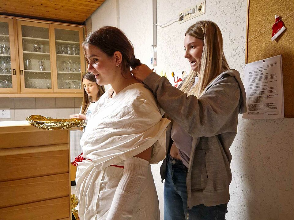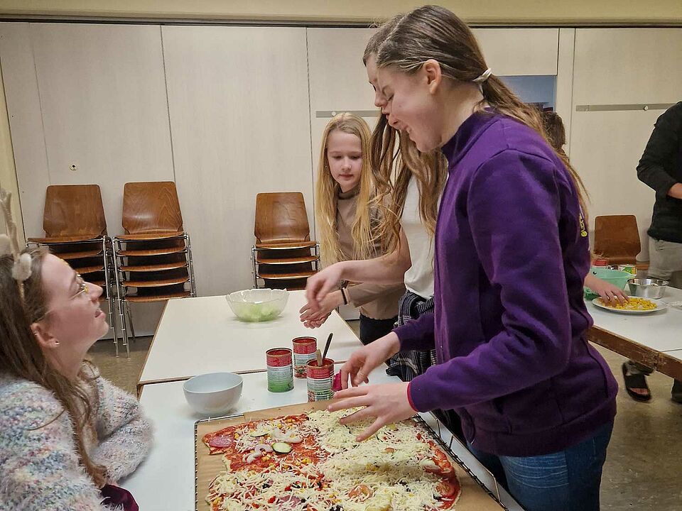 Zum Abendessen bereiteten die Jugendlichen gemeinsam Pizza zu – vom Teig bis zum Belegen und Essen. Spontan entstand außerdem ein Versteckspiel im Keller, bei dem Bälle auf Zeit gesucht werden mussten. Dieses Spiel sorgte für viel Spaß und Begeisterung bei allen Beteiligten.