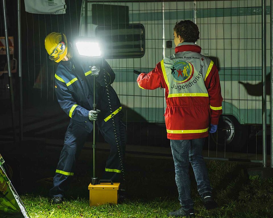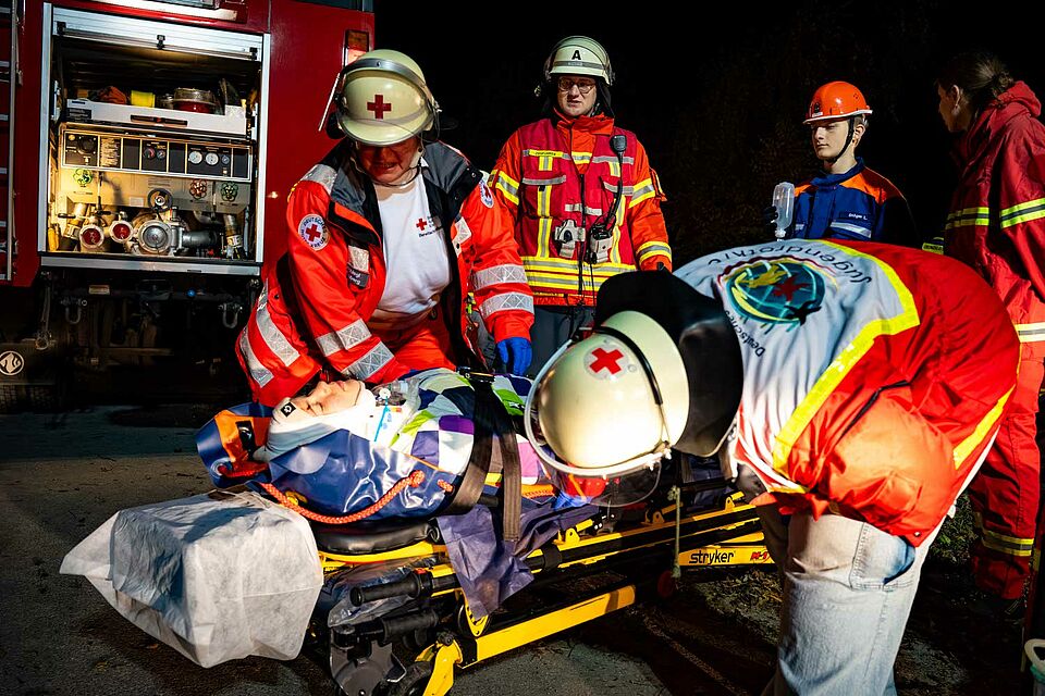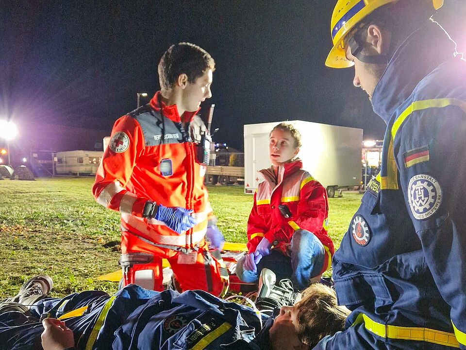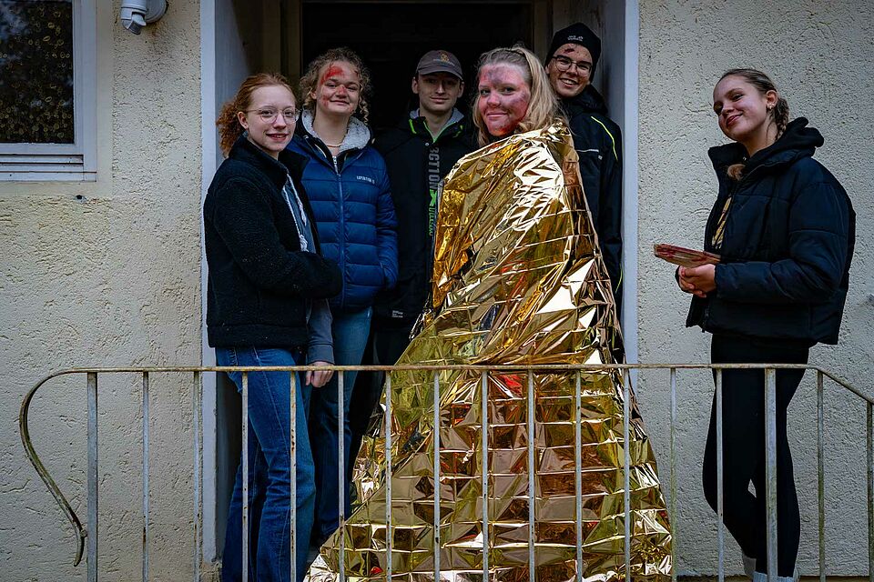 Gleichzeitig sorgten unsere Jugendlichen in der Notfalldarstellung dafür, dass die Szenarien besonders realistisch waren. Schon seit Beginn der 24-Stunden-Übung übernehmen unsere Notfalldarsteller:innen diese wichtige Aufgabe, von glaubwürdigen Verletzungsmustern bis hin zu emotionalem Schauspiel.